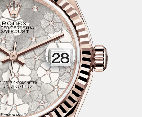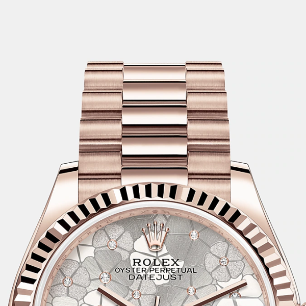- Dial color: Silver dial with floral motif and 24 Diamonds in 18k Everose Gold settings