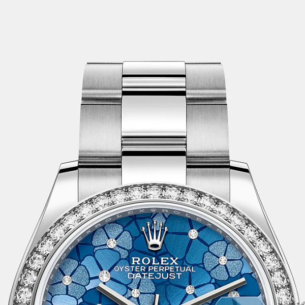 - Dial color: Azzurro blue dial with floral motif and 24 Diamonds in 18k White Gold settings
