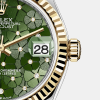 - Dial color: Olive green dial with floral motif and 24 Diamonds in 18k Yellow Gold settings