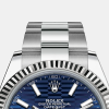 - Dial color: Bright blue dial with fluted motif and Indexes of 18k White Gold with luminous fill as hour markers