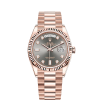 Dial color: Slate dial with a fine sunrays and 10 Diamonds as hour markers framed in 18k Everose Gold, 2 of which are baguette-cut at 6 and 9 o’clock