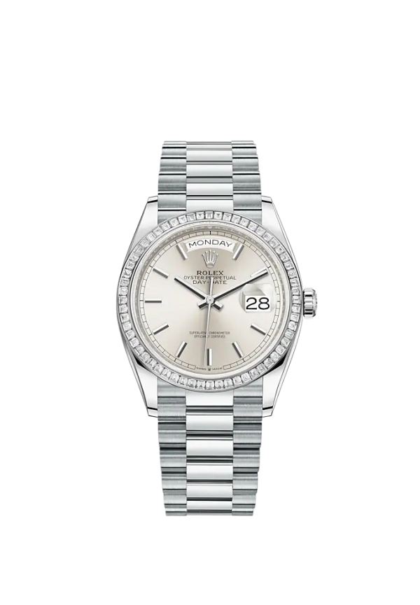 Unworn classic Rolex Day-Date, 36mm, Platinum and Diamonds, Ref# 128396tbr-0004 – luxury, elegance and practicality.