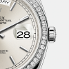 Dial color: Silver dial with a fine sunrays and a applied polished 18k White Gold Indexes as hour markers