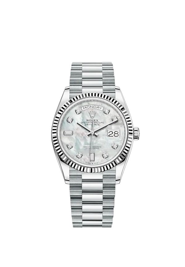 Unworn classic Rolex Day-Date, 36mm, Platinum, Ref# 128236-0002 – luxury, elegance and practicality.