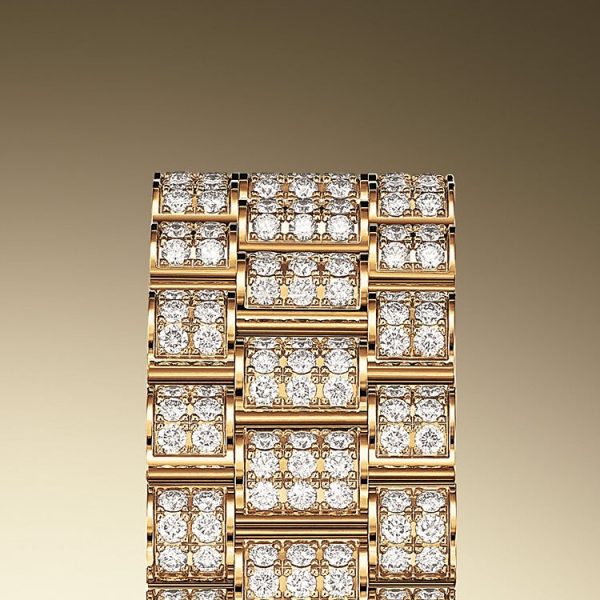 Dial color: Diamond-paved dial set with 291 diamonds and a applied polished black Roman numerals as hour markers