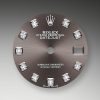 - Dial color: Dark grey dial with a fine sunrays and 10 Diamonds as hour markers framed in 18k White Gold