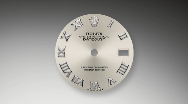 - Dial color: Silver dial with a fine sunrays and a applied polished 18k White Gold Roman numerals as hour markers