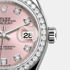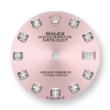 - Dial color: Pink dial with a fine sunrays and 10 Diamonds as hour markers framed in 18k White Gold