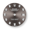 - Dial color: Dark grey dial with a fine sunrays and a 10 Diamonds as hour markers framed in 18k White Gold